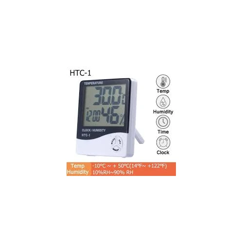 The Digital Temperature and Humidity Meter HTC-1 is a popular indoor environmental monitoring device used to measure room temperature and humidity levels accurately. It comes with a large LCD display that shows temperature, humidity, and clock with alarm function.